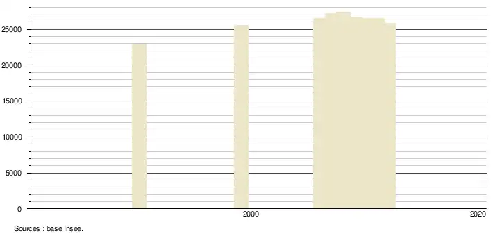 - Population municipale légale en vigueur au 1er janvier 2024, millésimée 2021, définie dans les limites territoriales en vigueur au 1er janvier 2023, date de référence statistique : 1er janvier 2021.