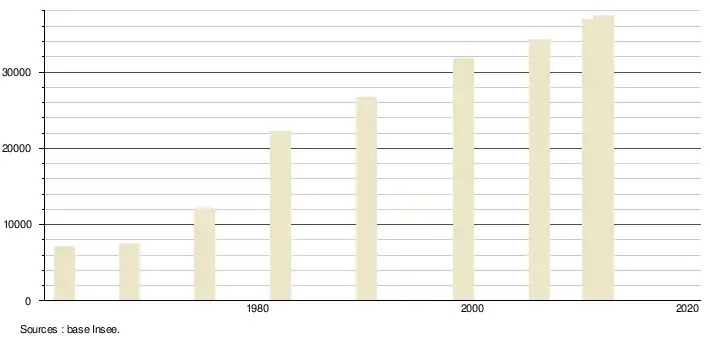 - Population municipale légale en vigueur au 1er janvier 2024, millésimée 2021, définie dans les limites territoriales en vigueur au 1er janvier 2023, date de référence statistique : 1er janvier 2021.