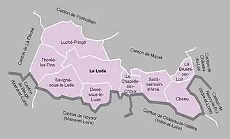 Les anciennes communes suivantes étaient incluses dans le canton du Lude[22] :