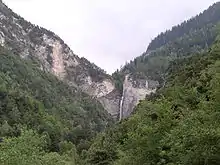 - La Salanfe débouche sur la plaine du Rhône par une cascade, la Pissevache, devenue timide depuis la mise en service en 1952 du barrage de Salanfe qui retient ses eaux. Cette cascade a inspiré différents écrivains et artistes dont Johann Wolfgang von Goethe.