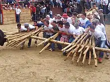 Lorsque les attrapeurs jugent que le taureau a fait de son mieux, et dans un moment d'inattention du taureau, ils enlèvent la forteresse et la remettent à sa place. Certains hommes (les plus courageux) défient le taureau, le forçant à courir dans toutes les directions, afin de le fatiguer et de le confondre pour l'attraper.