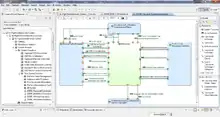 - La zone « navigateur méthodologique » qui expose à l'utilisateur les différentes phases d'ingénierie pour la modélisation de son architecture, et des raccourcis pour créer de nouveaux diagrammes en lien avec la phase d'ingénierie considérée ; cette vue permet également de faciliter la « transition » entre phases d'ingénierie, de façon à créer les liens de réalisation entre phases et les éléments associés ;