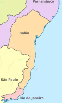 La côte de l'actuel État brésilien de Bahia fut découverte et explorée par des navigateurs portugais depuis 1500 et fut, ensuite, la cible de l'action de la contrebande du “pau-brasil” (Paubrasilia echinata).