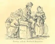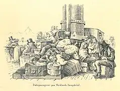 Croquis de voyages en Norvège décrit des touristes étrangers visitant la Norvège[2]. Les pages qui suivent proviennent d'une édition de 1945.