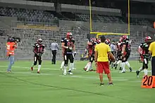 Les Carlstad Crusaders viennent de marquer un touch down contre les Black Knights d'Örebro.