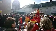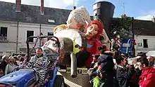 Les festivités de l’après-midi sont plus importantes et attirent plus de monde. La population costumée se presse dans les rues pour voir défiler les chars et donner son avis pour l’élection, en fin de journée, du plus beau char de l’année. Pour faire son choix, il est possible de les voir à plusieurs reprises, sur leur parking, lors des deux passages dans le défilé et par les descriptions pointilleuses de l’animateur de la fête qui décrit les "géants" lors de leur arrêt devant le podium.