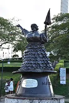 Au pied du Monument aux Héros Dominicains, élevé sur une éminence qui domine la ville de Santiago de los Caballeros, sont érigées quatre curieuses statues de P.V.C. brun, surmontant des plaques qui fournissent d'amples explications sur ces personnages, et sur leur rôle dans les traditions dominicaines. Ces statues représentent les deux types de lechones et les deux types de robalagallina. La robalagallina sencilla (simple) est une jolie fille mince, habillée comme une grisette parisienne : jupe longue, évasée en bas et moulant les hanches, taille de guèpe et poitrine mises en valeur par un corsé (bustier), chemisier léger, chignon et ombrelle. La robalagallina exagerada est une femme obèse, en crinoline, couverte de volants et coiffée "en choucroute", dotée d'un énorme bustier et d'un immense postérieur.