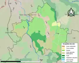 L'occupation des sols de la commune, telle qu'elle ressort de la base de données européenne d’occupation biophysique des sols Corine Land Cover (CLC), est marquée par l'importance des territoires agricoles (79 % en 2018), néanmoins en diminution par rapport à 1990 (86,8 %). La répartition détaillée en 2018 est la suivante : prairies (54,2 %), zones agricoles hétérogènes (22,6 %), forêts (12,9 %), zones urbanisées (8 %), terres arables (2,2 %)[34].