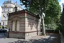 - Côté avenue de la Porte-de-Villiers est installé un ancien bureau d'octroi[2]. Celui de Villiers est attesté au moins depuis 1869. À l'origine en bois, le bâtiment est reconstruit en briques en 1909 par l'architecte Léopold Girauld[3].