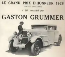 De 1929 à 1932, la carrosserie Gaston Grümmer construit des carrosseries d'une très grande élégance qui remportent de nombreuses récompenses lors des concours d'élégance sur les châssis les plus luxueux : Bugatti[1], Delage, Hispano-Suiza[2], Minerva, Panhard, Talbot[3]…