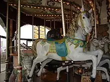 La machine classique a 3 rangs avec 48 chevaux sculptés et 2 chariots. Les sculptures en bois de chevaux fantastiques sont souvent attribuées à John Zalar et Frank Carretta.