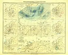 En 1838, William Reid publie sa controversée Law of Storms décrivant le comportement des dépressions[10]. Son ouvrage divise la communauté scientifique durant dix années. En 1841, l'américain Elias Loomis est le premier à suggérer la présence de fronts pour expliquer la météo mais ce n'est qu'après la Première Guerre mondiale que l'école norvégienne de météorologie développera ce concept[11]. Ce n'est que plus tard que la recherche en météorologie et le développement des ordinateurs a permis de passer d'une interprétation empirique de l'analyse des cartes météorologiques à une autre quantifiable avec les équations primitives atmosphériques.