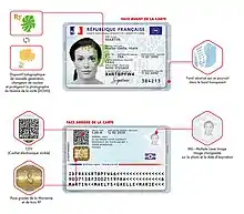 ![]() Recto de la carte nationale d'identité biométrique, dite carte d'identité électronique, au , pour les pays membres de l'Union européenne. |