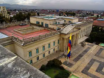 Vers le côté nord, face à la porte néoclassique extérieure, se trouvent la place des Armes et la place Rafael Núñez qui conduit directement vers le Capitole national de Colombie construit entre 1847 et 1926 et le siège du Congrès de la République.