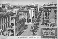 La signature du traité de Fès par le sultan Moulay Abd al-Hafid, instaure en 1912 le protectorat français au Maroc. Le protectorat dirigé par le maréchal Hubert Lyautey, résident général jusqu'en 1925, se traduit pour Casablanca par la construction d'un des plus grands ports d'Afrique et par son explosion urbaine, disciplinée par les plans d'Henri Prost, puis de Michel Écochard pour la ville européenne, tandis qu'Auguste Cadet dessine la nouvelle médina et le quartier réservé du Bousbir pour la ville dite « indigène »[50].