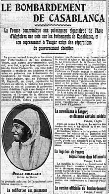 En représailles Casablanca est bombardée le 5 août par l'escadre de l'amiral Philibert qui capture le pacha Si Boubker Ben Bouzid. L'armée française bombarde la ville entre le 5 et le 7 août 1907 à partir de plusieurs navires de guerre ; une escadre française arrive le 7 août et débarque une unité commandée par le général Drude. Ses successeurs les généraux d'Amade et Moinier occupent progressivement les plaines atlantiques de la Chaouia et des Doukkalas, ce qui doit ouvrir la route de Fès, capitale de l'Empire chérifien, et la conquête du Maroc par l'ouest.