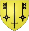 Les armes de Cassel se blasonnent ainsi : « D'azur à une épée d'or accostée de deux clefs adossées du même »[57]. L'ancien blason était : « D'or à l'épée de sable accostée de deux clefs adossées du même ». |