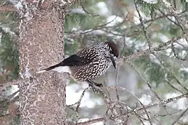 Le Cassenoix moucheté (Nucifraga caryocatactes) est une espèce de passereaux de la famille des Corvidae.