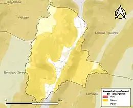 Le retrait-gonflement des sols argileux est susceptible d'engendrer des dommages importants aux bâtiments en cas d’alternance de périodes de sécheresse et de pluie[30]. 78,7 % de la superficie communale est en aléa moyen ou fort (59 % au niveau départemental et 48,5 % au niveau national)[Carte 3]. Depuis le , en application de la loi ELAN, différentes contraintes s'imposent aux vendeurs, maîtres d'ouvrages ou constructeurs de biens situés dans une zone classée en aléa moyen ou fort[Note 4],[31].