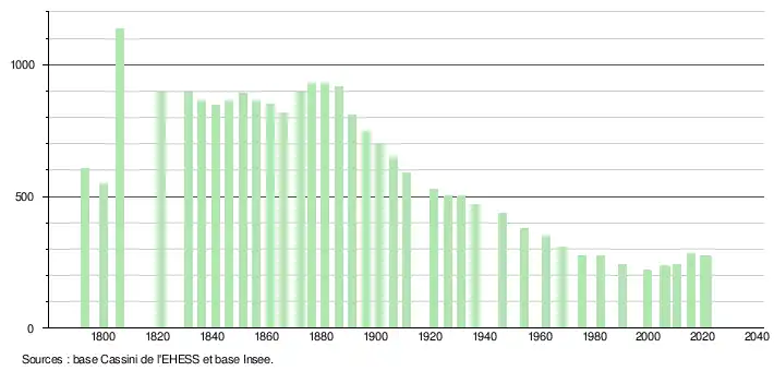 277 hab. (2021 en diminution de 1,77 % par rapport à 2015)