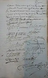 Le 9 juin 1632, François de Rouanne, époux de Gabrielle de Carlat, sœur de Jean, rédige lui aussi une quittance dotale pour son beau-père[29]. Cette quittance est écrite dans la maison de Bertrand de Masnau, le beau-père de Jean de Carlat. François de Rouanne reçoit la somme de la dot de son beau-père, Gabriel de Carlat, et de son beau-frère, Jean de Carlat. Cette somme s’élève à 2 500 livres, payées par le Sieur de la Serre, Jean de Carlat, en ducats et autres monnaies d’or.
