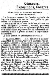 - Marre E. - « Concours du comice agricole de Mur-de-Barrez », Le Cultivateur aveyronnais : journal agricole illustré, paraissant tous les dimanches : agriculture, élevage, viticulture [En ligne], 1 juin 1923. p. 262.