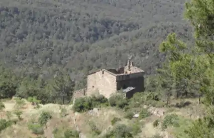 - SÉPULCRE ROMAIN : Tout près de l'exèdre et dans le même quartier de Boadas, nous pouvons voir un petit bâtiment d'origine romaine, du IVe ou IIIe siècle après J.-C., de construction carrée, avec des murs fermes et un socle bien travaillé. Il avait deux étages, le supérieur étant soutenu par un arc semi-circulaire. Aujourd'hui, il a été largement reconstruit, avec un toit à deux versants entièrement refait. À l'intérieur, on trouve quatre silos que Serra Ràfols considérait comme ibériques. Il est considéré comme le type "chambre" et "cellule" dans la typologie des sépulcres romains.
