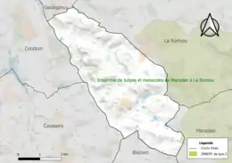 Une ZNIEFF de type 2[Note 1] est recensée sur la commune[12] : l'« ensemble de tulipes et messicoles de Marsolan à la Romieu » (3 318 ha), couvrant 6 communes du département[13].