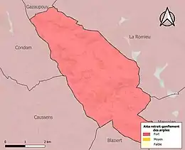 Le retrait-gonflement des sols argileux est susceptible d'engendrer des dommages importants aux bâtiments en cas d’alternance de périodes de sécheresse et de pluie. La totalité de la commune est en aléa moyen ou fort (94,5 % au niveau départemental et 48,5 % au niveau national). Sur les 97 bâtiments dénombrés sur la commune en 2019, 97 sont en aléa moyen ou fort, soit 100 %, à comparer aux 93 % au niveau départemental et 54 % au niveau national. Une cartographie de l'exposition du territoire national au retrait gonflement des sols argileux est disponible sur le site du BRGM[19],[Carte 3].