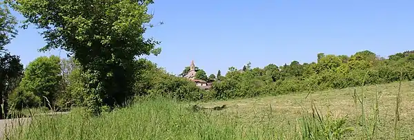 L'occupation des sols de la commune, telle qu'elle ressort de la base de données européenne d’occupation biophysique des sols Corine Land Cover (CLC), est marquée par l'importance des territoires agricoles (90,3 % en 2018), une proportion identique à celle de 1990 (90,3 %). La répartition détaillée en 2018 est la suivante : zones agricoles hétérogènes (71,6 %), prairies (18,6 %), forêts (9,7 %), terres arables (0,1 %)[33]. L'évolution de l’occupation des sols de la commune et de ses infrastructures peut être observée sur les différentes représentations cartographiques du territoire : la carte de Cassini (XVIIIe siècle), la carte d'état-major (1820-1866) et les cartes ou photos aériennes de l'IGN pour la période actuelle (1950 à aujourd'hui)[Carte 2].
