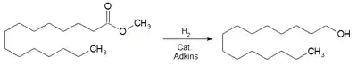 La réaction d'Adkins est l'hydrogénolyse des esters par le dihydrogène en présence de Cu(Cr2O3) comme catalyseur. Cette réaction qui exige une pression et une température élevées, est surtout utilisée à l'échelle industrielle.