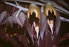 - Catasetum × sodiroi (= C. expansum × C.macroglossum) (Équateur).