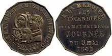 - Auguste Moyaux, Les chemins de fer autrefois et aujourd'hui et leurs médailles commémoratives, Bruxelles Charles Dupriez, éditeur, 1925 : Jeton dodécagone. Cuivre. Diam. : 25 mm. Droit. Le buste de l'amiral Dumont d’Urville et celui de sa femme coiffé d’un chapeau et tournés vers la gauche ; entr'eux, leur fils. Sur le tour : AUX MANES DE L'AMIRAL D. DURVILLE. Au bas : deux rameaux de laurier croisés.Rev. Une inscription en six lignes : A LA MÉMOIRE │ DES │ INCENDIÉS │ DE LA MALHEUREUSE │ JOURNÉE │ DU 8 MAI 1842.