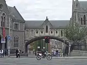 À l’extrémité ouest de la cathédrale est un pont de pierre couvert qui conduit à l’ancienne salle du Synode, construite sur le site de l’ancienne église Saint-Michel, prébendier de Christ Church, qui a été démolie par George Edmund Street lors de sa restauration de la cathédrale. Cette salle du Synode, qui intègre la tour de l’ancienne église, a été autrefois utilisée pour héberger le General Synods et le conseil diocésain de Dublin, Glendalough et Kildare. Y est maintenant présentée l’exposition Dublinia sur le Dublin médiéval.