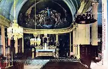 En 1784, le chœur de l'église s'enrichit d'un remarquable maître-autel en marbre blanc, représentant la Cène et les quatre évangélistes, dont chaque bas-relief est encadré par un groupe de colonnettes ioniques. En 1816, une assemblée paroissiale, indignée par l'absence d'un clocher, décide d'en voter la construction. L'édifice est alors renforcé par des contreforts, particulièrement vers le clocher unique qui surmonte le premier niveau.