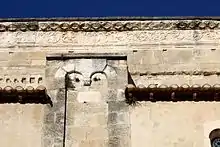 L'édifice comporte un entablement qui court le long de la nef, constitué d'une architrave à bandeaux, d'une frise et d'une corniche. Sur la face nord cette frise est en partie détruite mais conserve quelques sculptures : deux paires de griffons affrontés, un agneau pascal, Ève et le serpent, un homme jouant du cor. La face sud, bien visible à partir du cloître, laisse apparaître les faces des contreforts ornés de deux pilastres réunis au sommet par deux petits arcs dont les médianes s'appuient sur une console sculptée. Au-dessus des contreforts court, sur toute la longueur du mur, une frise somptueuse plus élaborée que celle du nord, composée d'un rinceau d'acanthes.