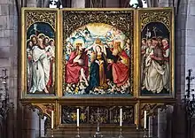 La cathédrale comprend deux autels principaux : le grand autel de Hans Baldung, et un autre autel de Hans Holbein le Jeune dans une chapelle latérale.