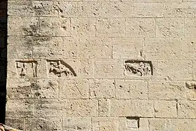 ![]() Sculptures romanes et marques de tâcheron. |