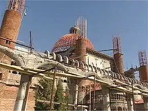 L'édifice atteint 50 m de long et 30 m en hauteur[9]. Il est constitué d'éléments d'architecture chrétienne incluant un baptistère et un cloître[2].