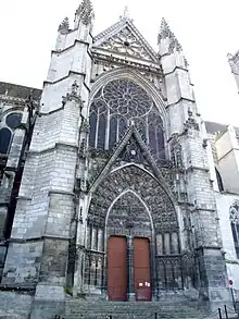 Façade du croisillon nord du transept, achevée fin XVe siècle (rosace flamboyante posée en 1528).