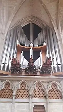 Il a été entièrement refait de 1979 à 1986 par le facteur Dominique Oberthür de Saintes, qui réalise un instrument moderne de quarante sept jeux, quatre claviers manuels, transmission mécanique par fils de fibre de carbone, tirage de jeux électrique avec combinateur électronique[20]. Un trait particulier est la présence de tuyaux en chamade.
