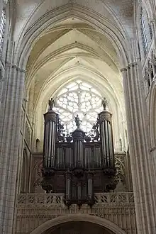 La cathédrale Saint-Étienne est dotée d'un orgue dont les origines remontent au XVIIe siècle. Il se trouve à l'extrémité occidentale de la nef, au revers de la façade, sous la rosace. Son buffet date de 1627 et fut construit par Valéran de Héman (1584-1640)[5], un des plus importants facteurs d'orgues de l'époque.