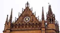 De 1440 à 1443, l'évêque Conrad Bayer de Boppart fait reconstruire par Jean de Commercy la chapelle d'Adhémar de Montheil dite chapelle des évêques. En 1468, un incendie ravage la toiture mais épargne le beffroi de la Mutte encore en bois[23], ce qui décide les bourgeois messins à reconstruire en pierre la partie supérieure de la tour de la Mutte, beffroi municipal. Cette tour, ainsi que la tour du Chapitre au Nord, est longtemps restée coiffée d’un colombier de bois. Hannes de Ranconval le remplaça de 1478 à 1481 par une flèche de style gothique flamboyant.