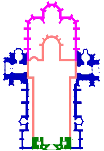 Tour principale, la tour sud présente un plan d'étage carré, qui se transforme progressivement en octogone grâce à un arrangement sophistiqué de pignons. Douze pinacles se dressent au sommet.