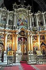 Une première iconostase avait été peinte pour la cathédrale par Jovan Klajić (1815-1888) ; elle a été transférée dans l'église du Saint-Esprit de Čenej. L'iconostase actuelle a été peinte par Paja Jovanović (1859-1957), un représentant du réalisme académique en Serbie. Les fresques de la cathédrale sont dues à Stevan Aleksić (1876-1923). Des vitraux contribuent également à la décoration de l'intérieur de l'édifice[1],[2].