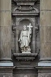 Sur la façade, on peut voir des statues des Apôtres, et, dans la niche centrale, le Sacré-Cœur de Jésus. Actuellement, sur la partie supérieure, figurent les armoiries du Pérou, à l'endroit où les armoiries de la ville de Lima se trouvaient à l'origine.