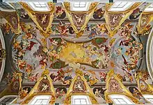 Entre 1701 et 1706, l’architecte jésuite Andrea Pozzo dessina une nouvelle église baroque possédant deux chapelles sur ses côtés pour dessiner une croix latine[1]. Le dôme fut construit au centre en 1841[1]. L’intérieur est garni de fresques baroques peintes par Giulio Quaglio durant les périodes 1703-1706 et 1721-1723[1].