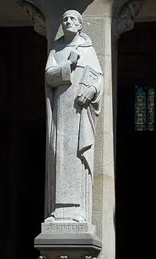 On y retrouve donc l'autel-tombeau de saint Vincent ainsi que le très beau reliquaire en forme de buste de vermeil réalisé en 1902. Sur le pourtour de la partie haute des boiseries, est déployée la tapisserie d'Aubusson de 1615 qui relate sur 28 mètres de longueur, sept miracles attribués au saint ainsi que la scène de sa canonisation en 1455 et le portrait du donateur, l'évêque de Vannes Jacques Martin de Belle-Assise[21].