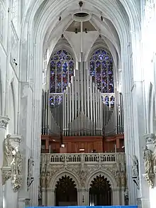 L'orgue principal au revers de la façade ouest a été construit en 1957 par le facteur d'orgues Stevens.