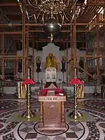 L'église mesure 32,5 mètres de hauteur, 29 mètres de longueur et 20 mètres de largeur. Les colonnes d'entrée sont en diorite. L'intérieur, pour lequel on a fait appel à des artisans italiens et tessinois, est décoré de marbre, avec des colonnes en marbre de Carrare. Les fresques sont l'œuvre du Suisse Rolf Iseli. Le nom des soldats morts pendant le siège est gravé dans le marbre.